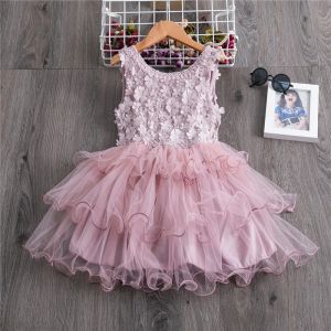 12. Girls Sleeveless Flower Decor Mesh Fluffy Dress