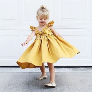 1. Girls Simple Solid Color Bowknot Decor Dress